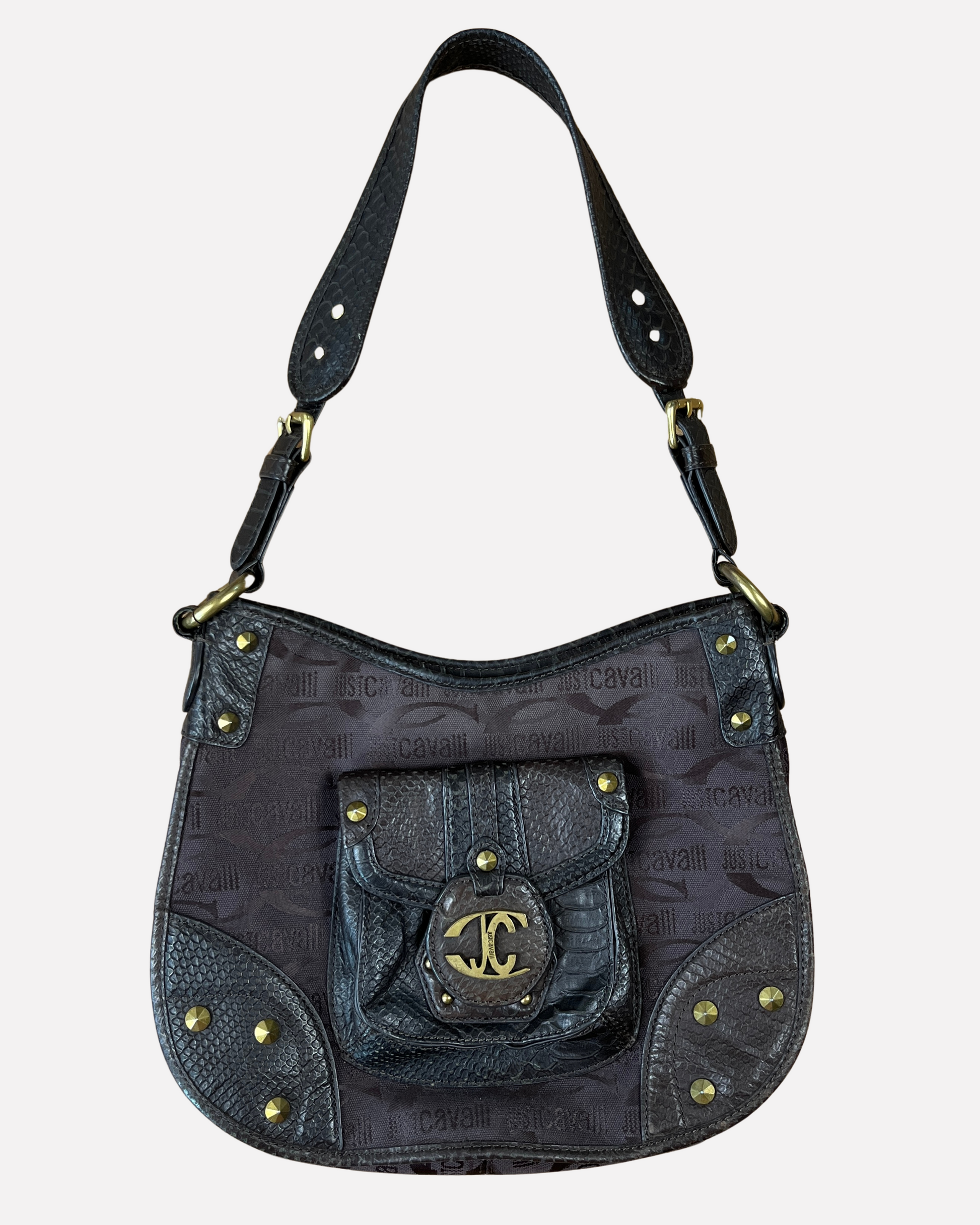 Roberto Cavalli 2000's shoulder bag in brown with gold hardware.