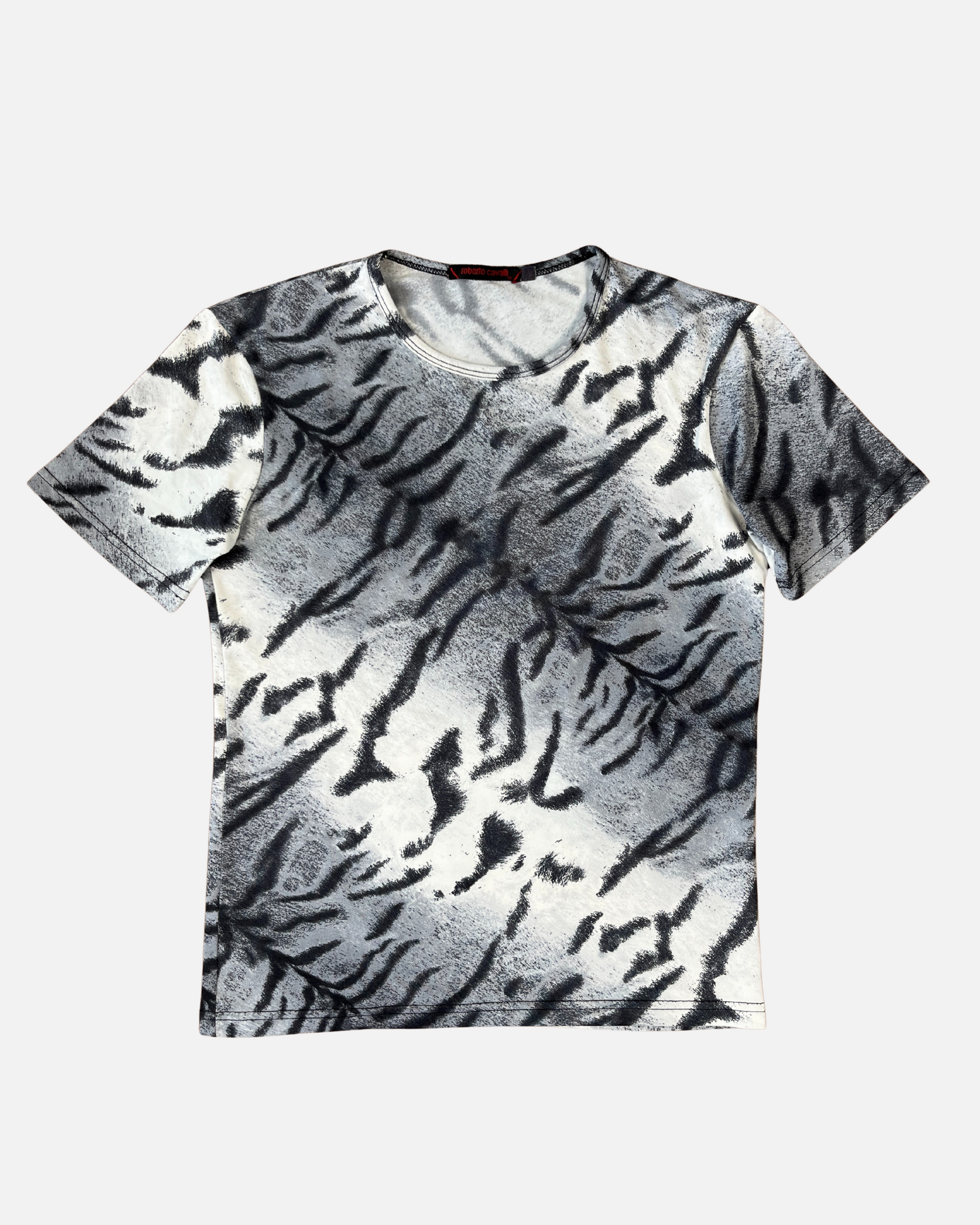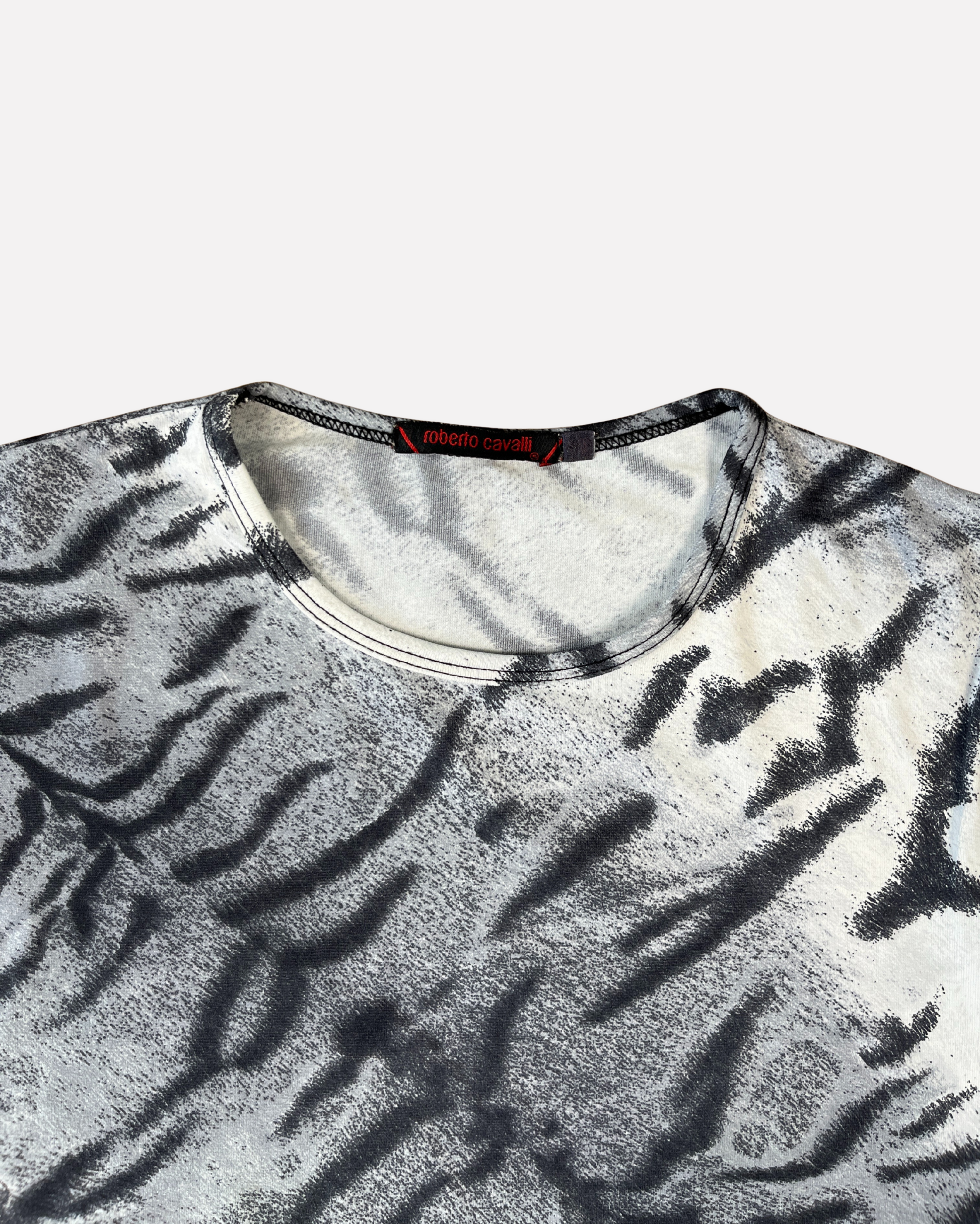 Roberto Cavalli FW2000 tee in blue-white zebra print.