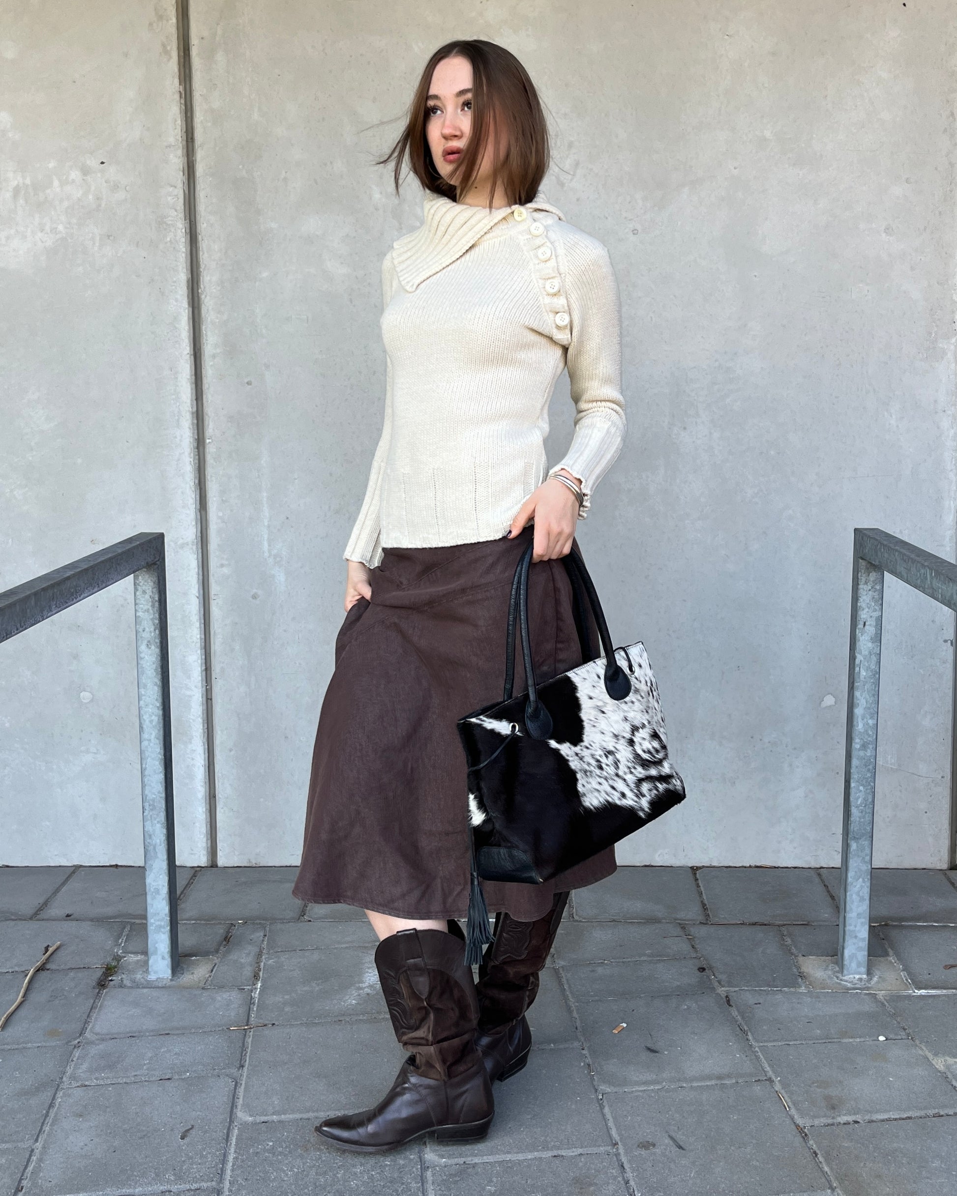 Vintage assymatrical knit sweater with button details.